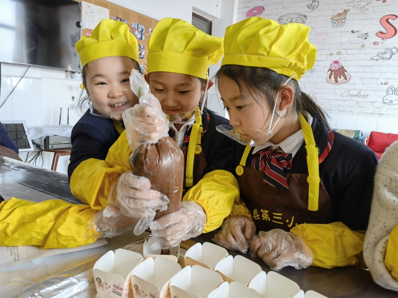 一是生活教育。為了讓課堂更加貼近生活,范縣三小開設(shè)烘焙課程,讓孩子們親自動手實踐體驗糕點的制作過程。課中在“磕”“打”“攪”“拌”“揉”“烤”的烘焙環(huán)節(jié)里體驗生活的艱辛,感悟“一粥一飯”的來之不易。課后,讓孩子們寫烘焙課上點滴感悟,也讓他們通過筆觸體會到了生活多姿多彩。