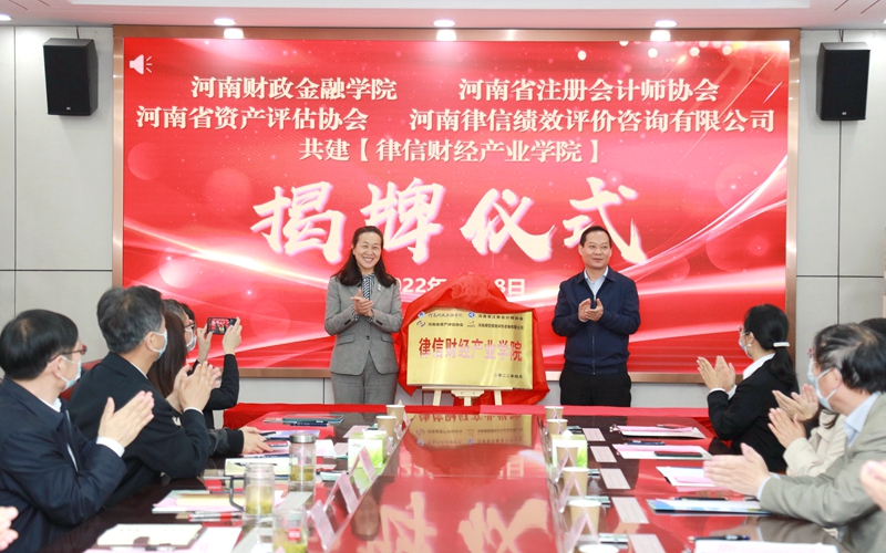 校黨委書記王雪云和省財(cái)政廳總會(huì)計(jì)師馬曉飛共同為“律信財(cái)經(jīng)產(chǎn)業(yè)學(xué)院”揭牌