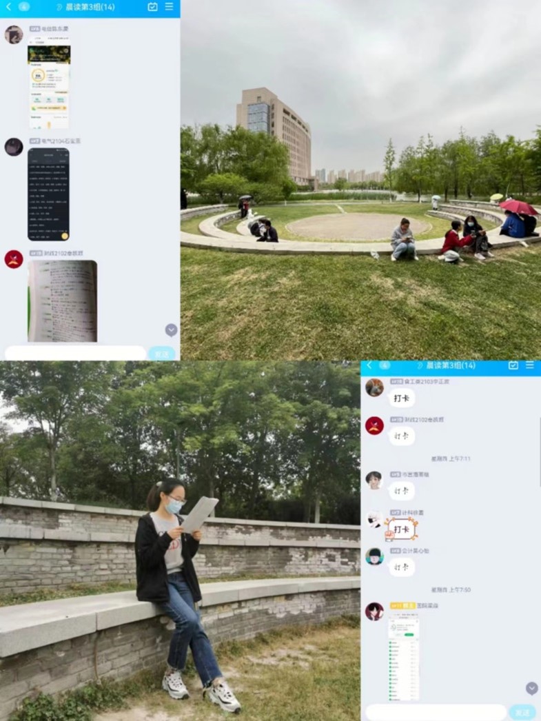 學(xué)校學(xué)生社團(tuán)依托“百日行動(dòng)”開展形式多樣的打卡活動(dòng),助力朋輩引領(lǐng),充實(shí)校園生活。書法美術(shù)協(xié)會(huì)在陳從志老師指導(dǎo)下線上以書傳情繪真心,以筆代劍踏征途,透過一筆一劃,向每一位與疫情奮戰(zhàn)的人傳遞溫暖和力量,書畫交流筆墨抗疫;讀者協(xié)會(huì)在曹慶娟老師線上指導(dǎo)下每日讀書,以書為媒,師生共品經(jīng)典,從書中汲取力量,讓閱讀滋養(yǎng)心靈,宅而“不荒”,宅有“所得”,為戰(zhàn)“疫”添書香;英語協(xié)會(huì)在郭平老師指導(dǎo)下每日美文精讀,一起分享學(xué)習(xí)方法與心得體會(huì),相互借鑒學(xué)習(xí),協(xié)會(huì)將把“心連心,同抗‘疫’”系列活動(dòng)繼續(xù)推進(jìn),把積極的心態(tài)與美好心情傳遞給更多人,用好習(xí)慣成就堅(jiān)韌品格;求是學(xué)社在慕運(yùn)動(dòng)老師指導(dǎo)下依托QQ群每日線上數(shù)學(xué)討論答疑,有理性的分析,有清晰的解答,有激烈的討論,共同學(xué)習(xí),共同進(jìn)步,用快樂學(xué)習(xí)助力抗疫;郭平老師在線上指導(dǎo)翻譯協(xié)會(huì)科學(xué)開展社團(tuán)活動(dòng),錄制“佳句速遞”視頻等形式極大豐富了學(xué)生們?cè)谝咔槠陂g的學(xué)習(xí)生活,深化了學(xué)校“三全育人”體系建設(shè),濃郁了工大校園的學(xué)習(xí)氛圍。時(shí)光影社及攝影愛好者們用自己敏銳的雙眼、感恩的內(nèi)心以及手中的鏡頭,溫暖地記錄著校園內(nèi)忙碌的、奉獻(xiàn)的、美麗的身影,表達(dá)著學(xué)子們的拳拳感激之情,他們用豐富的照片,記錄著工大師生的抗疫精神和一個(gè)個(gè)動(dòng)人的故事。