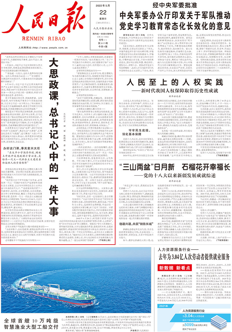 4月25日,習(xí)近平總書記來(lái)到中國(guó)人民大學(xué)考察調(diào)研,觀摩思政課智慧教室現(xiàn)場(chǎng)教學(xué),并對(duì)思政課建設(shè)提出明確要求。