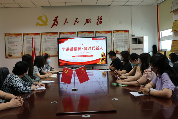 第一黨支部的活動(dòng)由學(xué)校第一黨支部組織委員王萌同志主持,全體黨員教師參加了活動(dòng)。王萌首先帶領(lǐng)大家觀看了 “在實(shí)現(xiàn)中華民族偉大復(fù)興的時(shí)代洪流中勇毅前進(jìn)--習(xí)近平總書(shū)記在中國(guó)人民大學(xué)考察時(shí)發(fā)表重要講話引發(fā)熱烈反響” 的央視新聞,然后帶領(lǐng)大家細(xì)致學(xué)習(xí)了習(xí)近平總書(shū)記在慶祝中國(guó)共產(chǎn)主義青年團(tuán)成立100周年大會(huì)上的重要講話精神,她以一個(gè)“激勵(lì)”、一個(gè)“里程碑”、一個(gè)“重要遵循”、一個(gè)“重大課題”、兩個(gè)“不愧為”、兩個(gè)“殷切期待”、三種“人”、三個(gè)“力”、四個(gè)“重要功勛”、四個(gè)“始終成為”、四個(gè)“塑造”等對(duì)講話精神做了宣講,強(qiáng)調(diào)每一名教師,要牢記為黨育人的職責(zé)使命,樹(shù)立為祖國(guó)為人民永久奮斗、赤誠(chéng)奉獻(xiàn)的堅(jiān)定理想,立足崗位,努力工作,善用“大思政課”,深化“三全育人”,著力培養(yǎng)堪當(dāng)民族復(fù)興重任的時(shí)代新人,為學(xué)校發(fā)展和實(shí)現(xiàn)中華民族的中國(guó)夢(mèng)做出自己的貢獻(xiàn)。