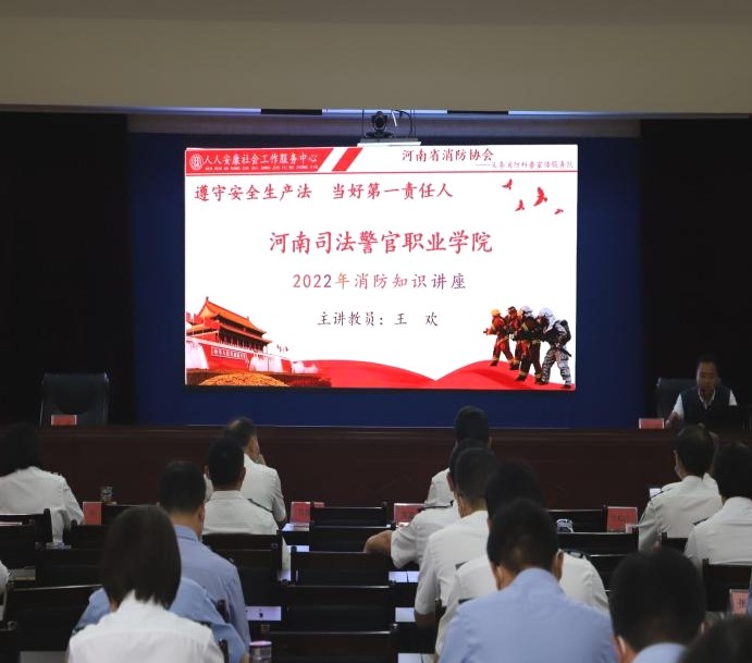 為認真貫徹執(zhí)行河南省教育廳《全省教育系統(tǒng)火災警示宣傳教育月活動暨深化消防宣傳進校園工作方案》(教辦安全〔2022〕136 號)要求,做到“四個一”:即上一堂消防課、閱讀一本消防知識讀物、舉辦一次消防實操、參加一次疏散逃生演練,切實提升學院消防安全管理和宣傳教育水平,按照學院“能力作風建設年”活動安排,河南司法警官職業(yè)學院于 5 月 27 日舉辦了消防技能提升專項培訓班。學院邀請了河南省消防協(xié)會義務消防科普宣傳服務隊的教員王歡給大家進行了消防安全技能理論培訓。