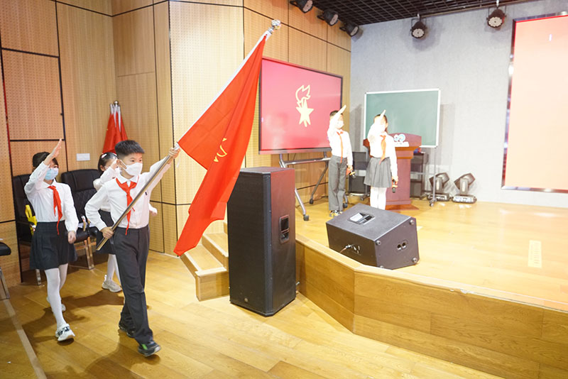 經(jīng)過入隊(duì)前教育工作的有序開展,金水區(qū)第二實(shí)驗(yàn)小學(xué)產(chǎn)生了新一批少先隊(duì)隊(duì)員,并于5月30日舉辦入隊(duì)儀式。受疫情影響,儀式分為主會場與分會場,報告廳為主會場,分會場設(shè)于一年級各班教室。伴著嘹亮鏗鏘的出旗曲,旗手邁著整齊的步伐進(jìn)入會場,隊(duì)員們的組織歸屬感悄然萌發(fā)。在隊(duì)員代表祁心語的指揮下,隊(duì)員們齊聲唱響《我們是共產(chǎn)主義接班人》。