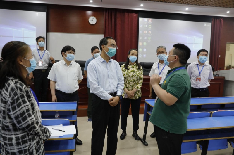 座談會開始前,尹洪斌一行對2022年專升本考試河南財政金融學院考點進行了巡視,詳細了解考試安全、疫情防控等工作,通過視頻監(jiān)控察看了考場情況和考務人員工作情況,對專升本考務工作進行現(xiàn)場檢查指導。