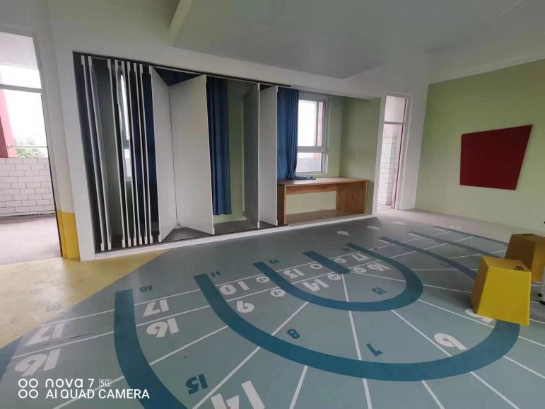 9000冊捐贈圖書、25個圖書架、4套組合桌凳、一套圖書管理設備……一棟圖書館赫然矗立,孩子們徜徉書海、放飛理想;老師們閱讀經(jīng)典、樂事勸功。校園懸浮板的鋪設完成標志著校園文化建設也隨之完工,體育館般的健身場所讓全校師生為之驚嘆。綠色的校園地板像海洋似草原,溫馨的圖書館布置仿佛置身于童話世界,吸引師生駐足欣賞!