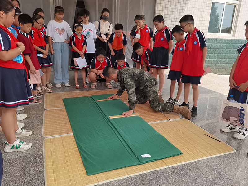 三所學(xué)校的23名小學(xué)生在10名暑期返鄉(xiāng)大學(xué)生的帶領(lǐng)下,與武警部隊(duì)官兵共慶“八一”建軍節(jié)。活動(dòng)開始,戰(zhàn)士們首先舉行了升國(guó)旗儀式,又開展了軍姿、隊(duì)列、擒拿格斗、槍械組裝、疊被等軍事、內(nèi)務(wù)展示活動(dòng)。