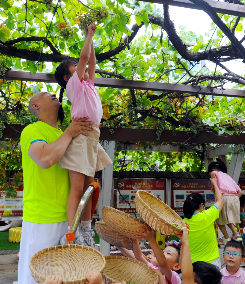 省直機(jī)關(guān)第二幼兒園園長(zhǎng)解慧表示:“今年的葡萄節(jié),我們圍繞著自然課程,和孩子們一起走進(jìn)葡萄的世界。通過(guò)觀察、探索、采摘、品嘗等,讓孩子們對(duì)葡萄產(chǎn)生濃厚的興趣,用獨(dú)特的視角認(rèn)識(shí)、了解葡萄的種類、特征、生長(zhǎng)過(guò)程等。用歌唱、舞蹈、美工、自制繪本等多種形式大膽表達(dá)自己的認(rèn)知與感受,帶孩子進(jìn)入一個(gè)開(kāi)闊的學(xué)習(xí)探索空間,感受大自然課堂的無(wú)限樂(lè)趣。”