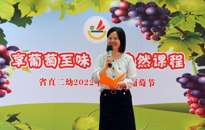 副園長(zhǎng)宋雙瑩致辭表示:“ 8月10號(hào)對(duì)省直二幼的孩子們來(lái)說(shuō)是非常有意義的一天。也是我們省直二幼小朋友的專屬節(jié)日,孩子們用葡萄葉作畫(huà)、用葡萄汁扎染手絹,葡萄葉拓印。在參與采摘,體驗(yàn)收獲的快樂(lè)中品嘗美味,感受勞動(dòng)的幸福;讓我們相約在葡萄藤下,一起收獲、一起品嘗,一起去發(fā)現(xiàn)更多葡萄的秘密和樂(lè)趣,去分享更多葡萄帶來(lái)的甜蜜和喜悅吧,記住這美好時(shí)刻,在如詩(shī)的畫(huà)卷里,沐浴秋天的收獲,展望美好的明天。
