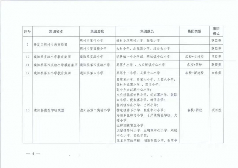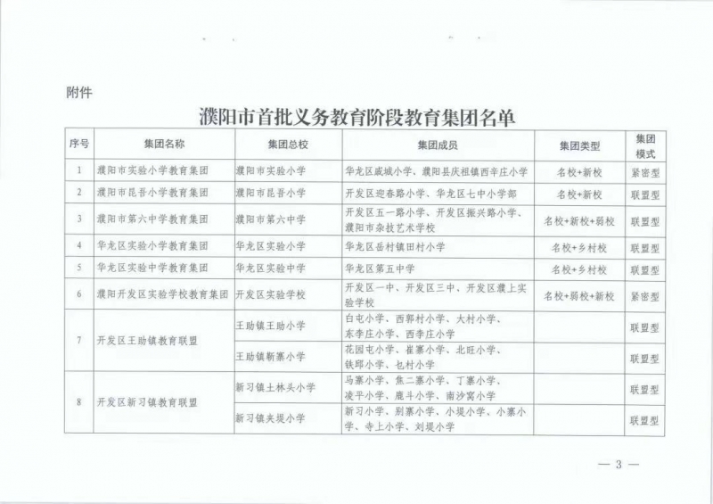 濮陽(yáng)市首批義務(wù)教育優(yōu)質(zhì)教育集團(tuán)名單