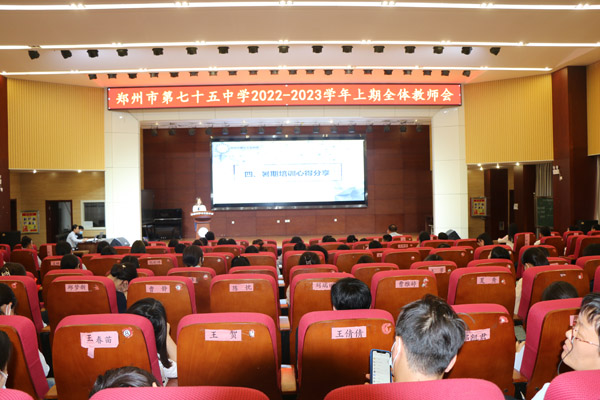 涼風(fēng)收夏暑,新雨帶秋嵐。8月30日下午,鄭州市第七十五中學(xué)在學(xué)校報告廳召開了2022-2023學(xué)年上學(xué)期全體教師會。會議由學(xué)校辦公室副主任劉艷主持,全體教職工參加了會議。