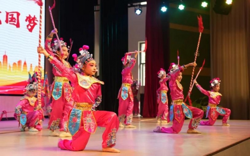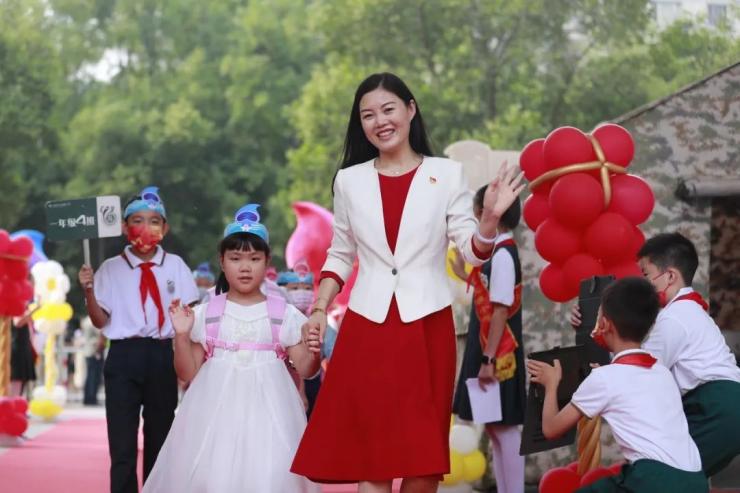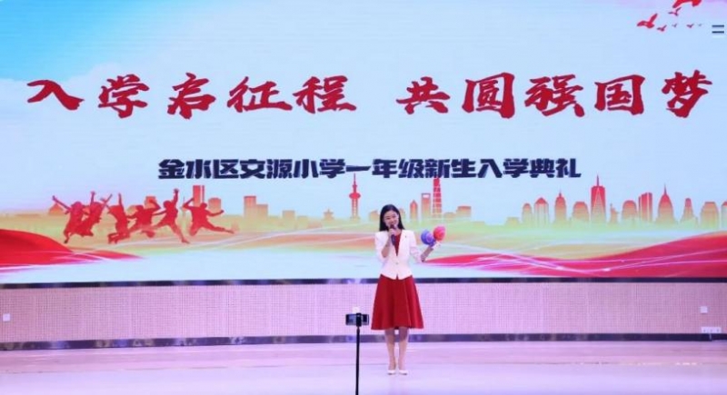 在多功能廳和校園操場上,體育、美育課程競相綻放,孩子們沉浸式體驗“小水滴”課程的魅力。由于疫情原因,家長朋友們無法陪伴孩子們一同報到,所以學校采取了線上直播的方式邀請家長參與其中。上午9:20,一年級新同學相聚多功能廳,舉行以“入學啟征程,共圓強國夢”為主題的新生入學典禮,典禮上,文源美育特色課程立體呈現(xiàn)。戲曲、舞蹈、小鐘琴、吟誦社團孩子們的展示,讓一年級的新同學看到在“源”教育的浸潤下,哥哥姐姐們已經(jīng)成長為德體美勞全面發(fā)展的五育少年。他們也暗下決心,要樹立自己的目標,打牢人生底色,搭載文源夢想巴士,為實現(xiàn)偉大的強國夢而努力奮斗!開學典禮上,學校黨支部書記、校長黃延穎給一年級新同學提出了三點希望:學會獨立、勤奮學習、文明守紀。黃校長帶領(lǐng)小水滴們許下邁入校園后的第一個承諾——入學啟征程、共圓強國夢,孩子們清澈響亮的聲音傳遍文源的每一個角落。開學典禮結(jié)束,孩子們又來到了操場觀看體育、科技、美術(shù)社團的展示,一顆強國夢的種子在他們心中生根發(fā)芽……