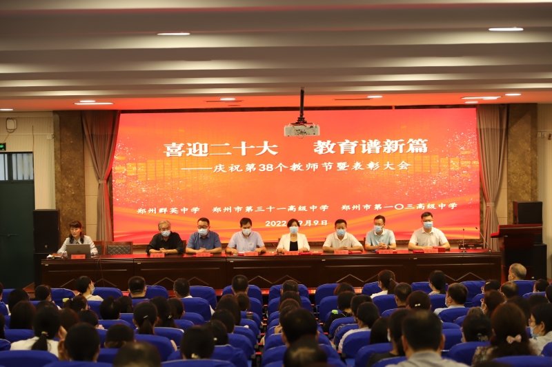 三尺講臺(tái)傳至理,九月桃李念師恩。2022年9月9日,在第三十八個(gè)教師節(jié)即將到來之際,鄭州群英中學(xué)、鄭州市第31·103高級(jí)中學(xué)舉行教師節(jié)表彰大會(huì),共同慶祝這個(gè)專屬于教師的節(jié)日。