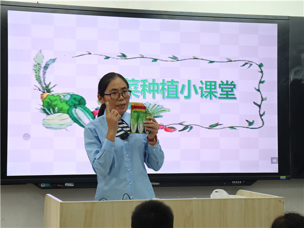 鄭州市金水區(qū)南陽路第二小學的“小種植課堂”開課啦!時值金秋九月的下午,在安靜的教室里,勞動與技術學科的老師為孩子們講解植物種植的條件,如何根據(jù)季節(jié)選擇種植的種類及育苗、澆水、施肥、防蟲過程中的注意事項,對于從小在城市中長大的孩子,這些知識對于他們來說新奇又有趣。