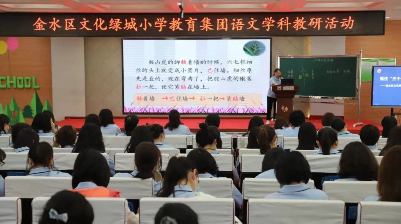金水區(qū)文化綠城小學(xué)教育集團(tuán)不僅重視人員間的輪崗流動(dòng),更重視教學(xué)資源的優(yōu)勢(shì)互補(bǔ),在深度互動(dòng)中推動(dòng)兩校區(qū)教育教學(xué)高質(zhì)量發(fā)展。學(xué)校根據(jù)教師的年齡、教齡、職稱和特長(zhǎng)等,制定“青雅”教師發(fā)展規(guī)劃,明確教師發(fā)展目標(biāo),堅(jiān)持“培育為主、引進(jìn)為輔、優(yōu)化組合”的師資隊(duì)伍培養(yǎng)策略,形成教師培訓(xùn)“三大工程”,即青年教師達(dá)標(biāo)工程、骨干教師培育工程、特色教師養(yǎng)成工程;構(gòu)建“導(dǎo)師+團(tuán)隊(duì)”的教師學(xué)習(xí)共同體,成立12個(gè)教師發(fā)展社團(tuán),為集團(tuán)打造智慧型、專業(yè)化的教師團(tuán)隊(duì)匯聚源泉;建立校區(qū)共學(xué)共研機(jī)制,兩校區(qū)設(shè)置學(xué)科教研中心,由校長(zhǎng)直接領(lǐng)導(dǎo),通過(guò)學(xué)科“大教研組”的教研形態(tài),為教師的成長(zhǎng)引路子、搭臺(tái)子、送梯子,引導(dǎo)教師參與學(xué)校規(guī)劃的“自上而下”小課題研究,助力教師從優(yōu)秀走向卓越,實(shí)現(xiàn)資源共享、科研聯(lián)動(dòng)、互促共生。