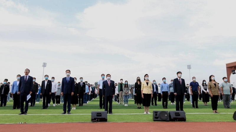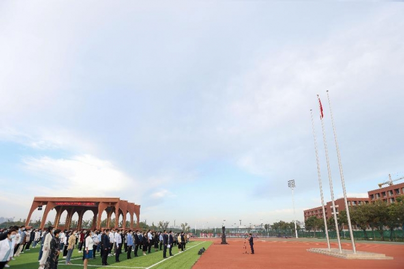9月26日上午,中原科技學(xué)院許昌校區(qū)在田徑場(chǎng)舉行2022年秋季學(xué)期第一次升國(guó)旗儀式。中原科技學(xué)院理事長(zhǎng)李香枝,黨委書(shū)記邵書(shū)峰,校長(zhǎng)趙健,黨委副書(shū)記、副校長(zhǎng)杜建松,黨委副書(shū)記、紀(jì)委書(shū)記左麗娟和學(xué)校黨政干部、新生輔導(dǎo)員、馬克思主義學(xué)院教師代表及2022級(jí)本專科新生代表參加了本次升國(guó)旗儀式。儀式由杜建松主持。
