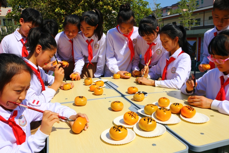 9月28日,許昌市古槐街小學(xué)學(xué)生將校園里成熟的柿子摘下,用毛筆在柿子上寫下“我愛您,祖國!祝您‘柿柿’如意,繁榮富強!”的美好祝福