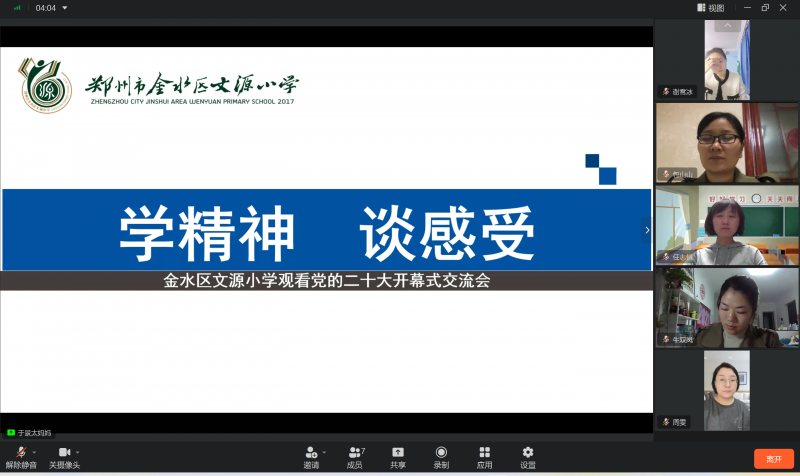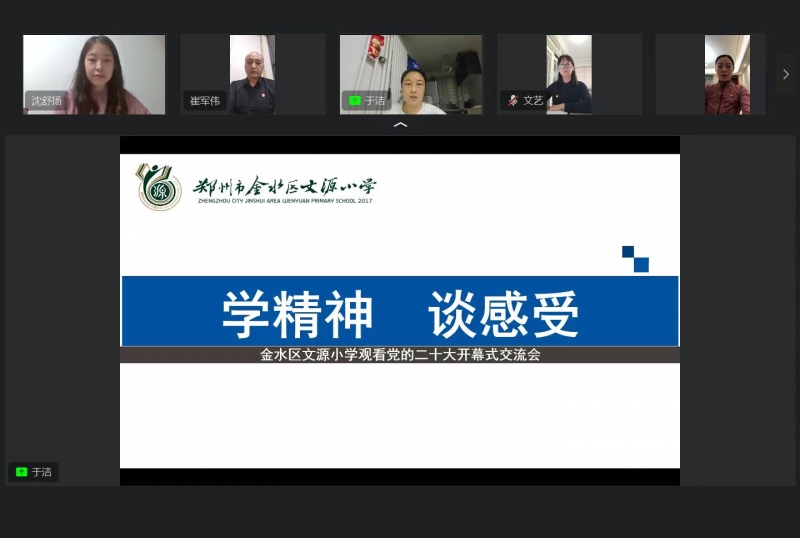 開(kāi)幕會(huì)結(jié)束后,黨的二十大報(bào)告精神在金水區(qū)文源小學(xué)“一石激起千層浪”,引發(fā)師生強(qiáng)烈反響。全校黨員教師會(huì)后齊聚線上暢談感受、分享感悟,并撰寫(xiě)心得體會(huì)。