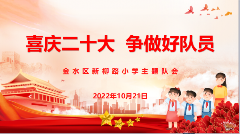 在中國共產(chǎn)黨第二十次全國代表大會(huì)召開之際,為教育引導(dǎo)廣大少先隊(duì)員聽黨話、跟黨走,增強(qiáng)愛國熱情,培養(yǎng)良好愛國情操,2022年10月21日,鄭州市金水區(qū)新柳路小學(xué)舉行了線上少先隊(duì)主題教育活動(dòng)--“喜慶二十大 爭做好隊(duì)員”。