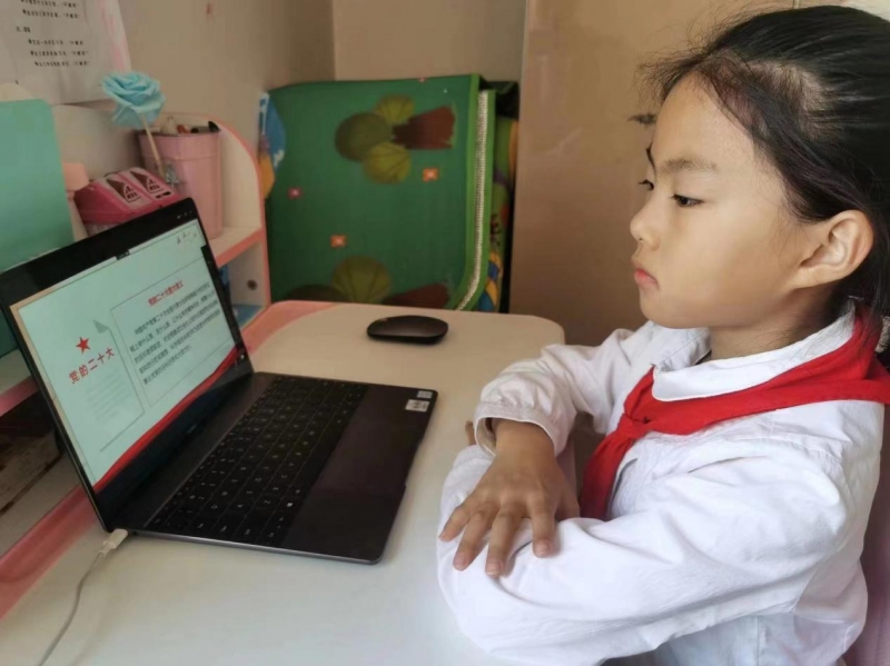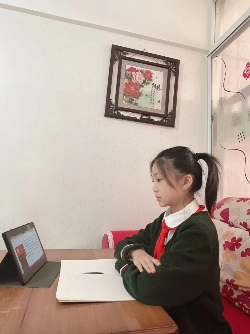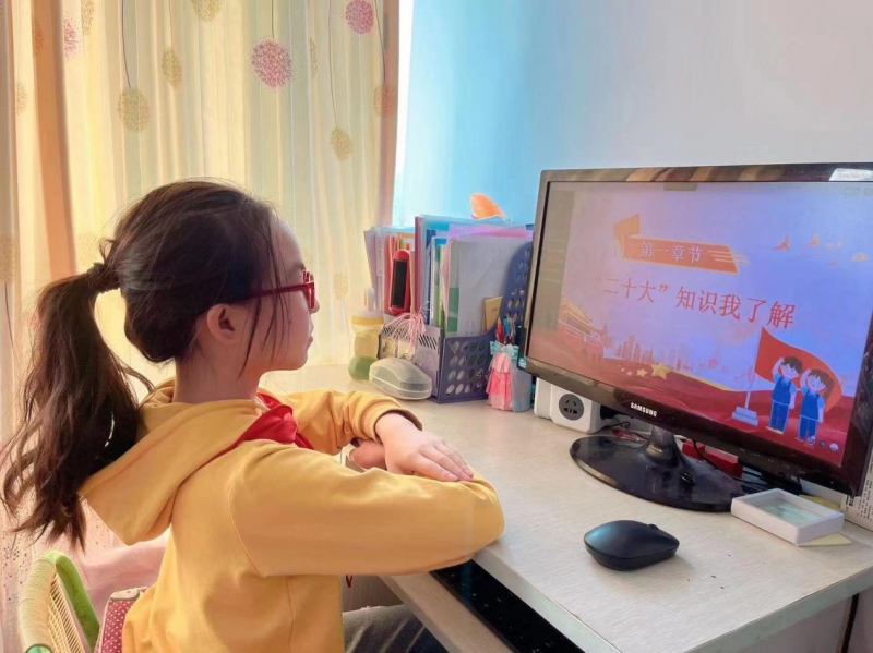 隊(duì)會(huì)課分為“‘二十大’知識(shí)我了解”、“偉大黨史我來說”、“爭做新時(shí)代好隊(duì)員”三個(gè)篇章。全校少先隊(duì)員們身穿校服、佩戴干凈整潔的紅領(lǐng)巾齊聚云端,聆聽各中隊(duì)輔導(dǎo)員以少年兒童的視角講述的新時(shí)代偉大成就,共同慶祝黨的二十大勝利召開。