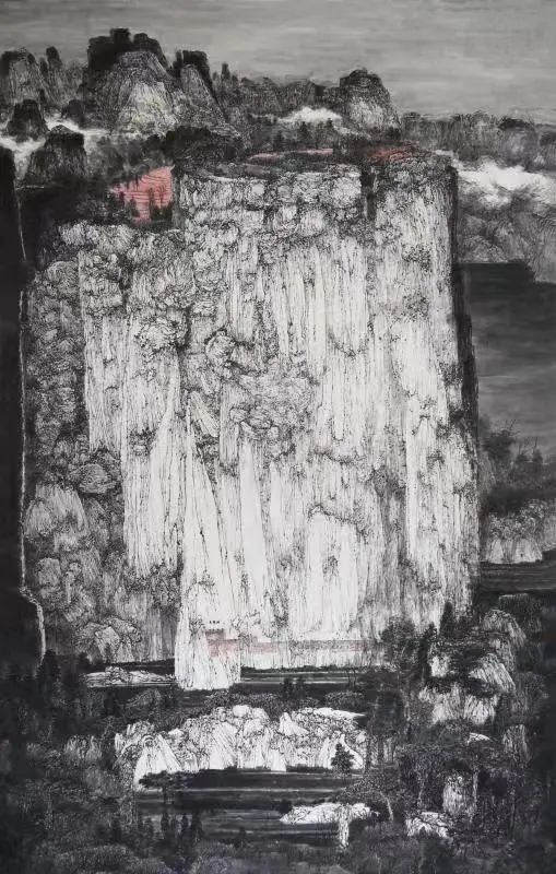 楊淑馨《村口的紅旗渠》鋼筆速寫 45cmx45cm