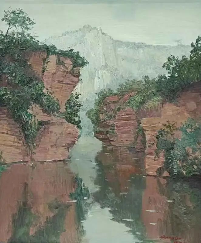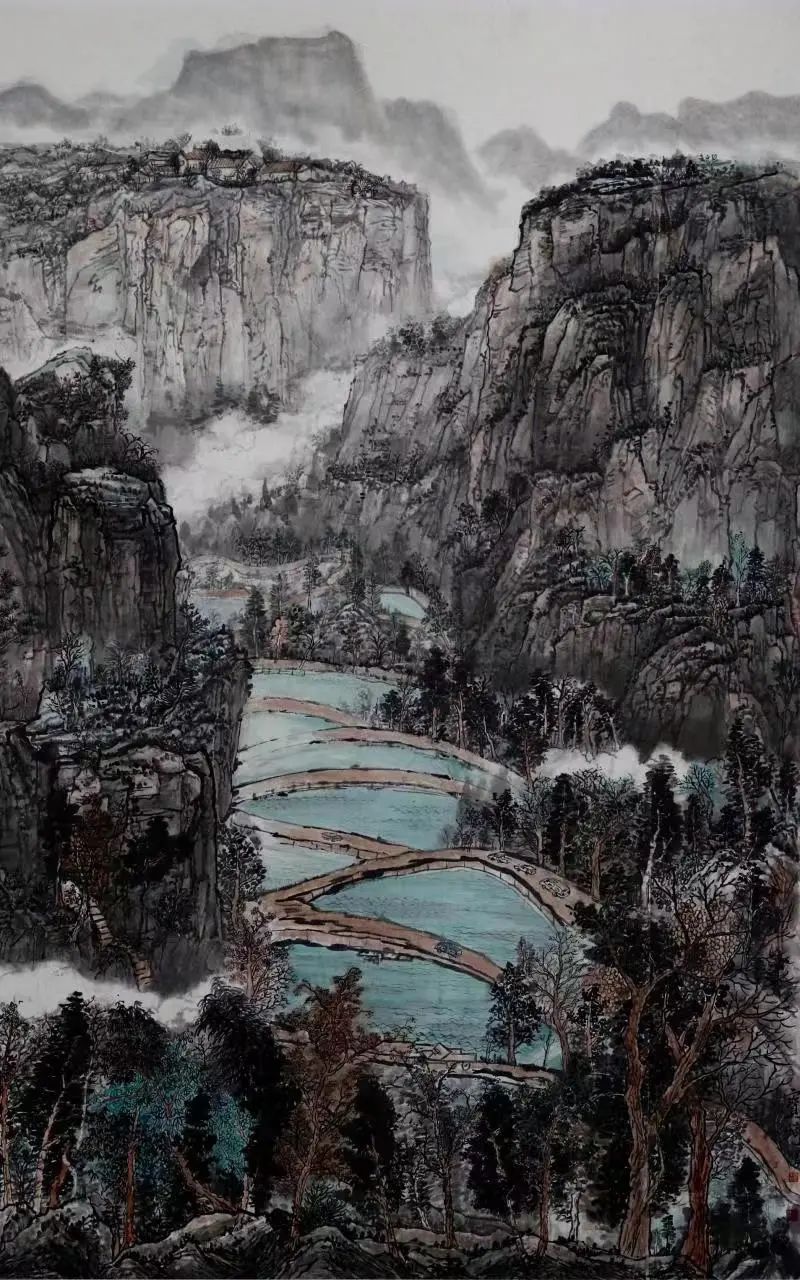 紀保超《紅旗渠畔話當年》國畫 100cmx100cm
