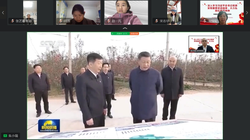 接著大家一起觀看中央電視臺(tái)關(guān)于習(xí)總書(shū)記視察延安、安陽(yáng)時(shí)的新聞短片。看著總書(shū)記一行人拾級(jí)而上,行走在歷史和現(xiàn)實(shí)之間,耳邊回響著總書(shū)記對(duì)紅旗渠精神的肯定:紅旗渠精神是中國(guó)共產(chǎn)黨人精神譜系中的閃亮坐標(biāo),是中華民族不可磨滅的歷史記憶,永遠(yuǎn)震撼人心。
