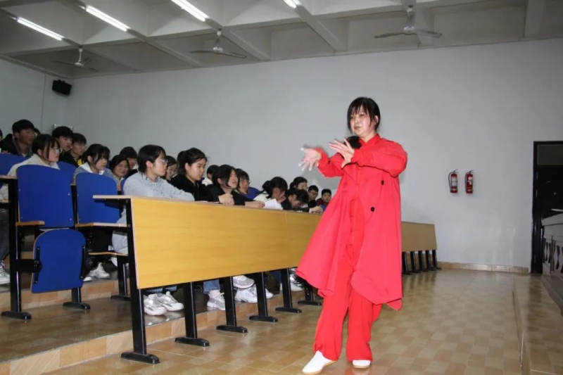 為使孩子們注意力更加集中,對自己更有信心,孟老師為孩子們表演了太極拳,快慢相間,像靈貓撲鼠;剛?cè)嵯酀缑突⑾律剑粸⒚擄h逸,又如鶴翔藍天。她精彩的表演使同學(xué)們心情愉悅,讓大家正確看待學(xué)習(xí)壓力,深刻明白適當(dāng)?shù)膲毫梢猿蔀閷W(xué)習(xí)的動力,千萬不要壓力過大使自己陷入焦慮。孟老師還列舉了常見易操作的多種解壓方法,引導(dǎo)同學(xué)們正確調(diào)節(jié)壓力,不僅要有“咬定青山不放松”的“七寸必打”定力,還要有“磨鐮不等于少割麥”的蓄勢待發(fā)“緩力”,堅持循序漸進地發(fā)展,張弛有度地學(xué)習(xí)生活,才能慢慢走向成功。