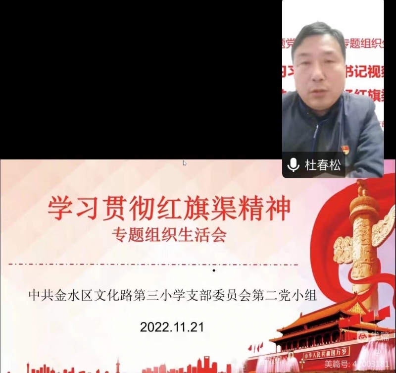 為深入學(xué)習(xí)貫徹黨的二十大精神和習(xí)近平總書記視察河南安陽重要講話精神,11月21日,鄭州市金水區(qū)文化路第三小學(xué)黨總支召開“深入學(xué)習(xí)習(xí)近平總書記視察安陽重要講話精神,大力弘揚(yáng)紅旗渠精神”專題組織生活會暨主題黨日活動(dòng)。