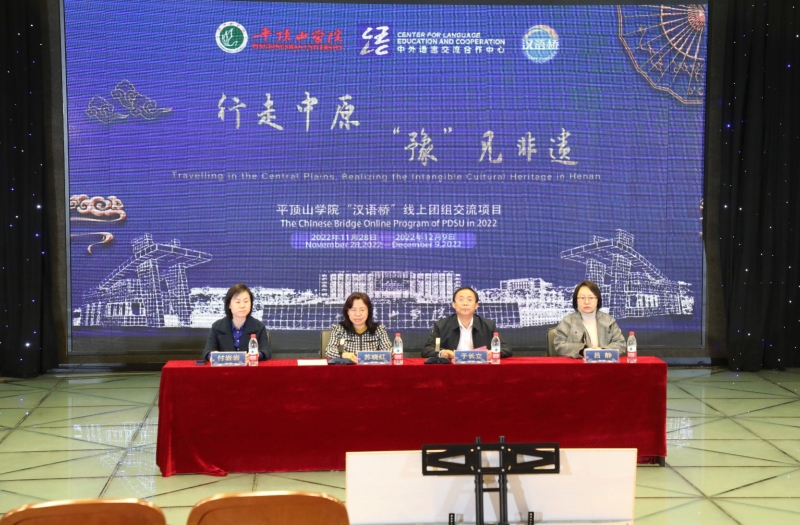 平頂山學(xué)院作為河南省首批十個漢語國際推廣基地之一,始終堅持“文化為根、特色為魂”的建設(shè)思路,把挖掘、傳承、創(chuàng)新地域特色文化作為基地建設(shè)的總體目標(biāo),打造具有濃郁地域特色的漢語國際推廣平臺。學(xué)校連續(xù)兩年成功申辦教育部中外語言交流合作中心“漢語橋”線上團組交流項目,體現(xiàn)了平頂山學(xué)院漢語國際推廣工作的實力,也是學(xué)校國際化特色辦學(xué)建設(shè)單位的階段性成果。