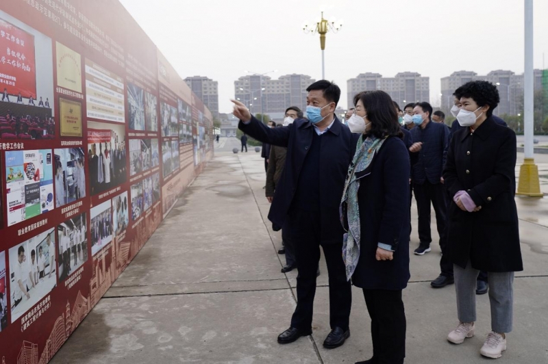 在學(xué)校神舟廣場,溫道軍代表學(xué)校對毛杰一行來校調(diào)研指導(dǎo)表示歡迎,對教育廳及市委、市政府關(guān)心支持學(xué)校事業(yè)發(fā)展表示感謝,并從“黨建引領(lǐng)揚(yáng)風(fēng)帆”“立德樹人擔(dān)使命”“人才強(qiáng)校聚眾智”“教學(xué)科研深耕耘”“技能大賽展風(fēng)采”“產(chǎn)教融合謀發(fā)展”“就業(yè)創(chuàng)業(yè)拓新路”“人文校園育英才”等8個方面介紹了學(xué)校“我們這十年”辦學(xué)成果展。