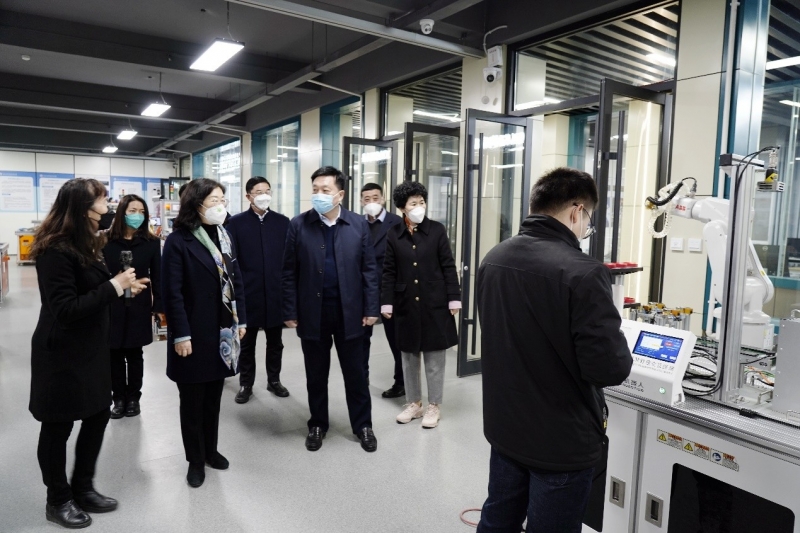 毛杰一行先后實(shí)地調(diào)研了工業(yè)機(jī)器人工程中心、數(shù)控加工中心、精密制造中心等教學(xué)實(shí)訓(xùn)場地,聽取相關(guān)學(xué)院負(fù)責(zé)人關(guān)于人才分類培養(yǎng)、教學(xué)改革、實(shí)訓(xùn)條件、學(xué)生技能大賽等方面的介紹,并與正在進(jìn)行實(shí)訓(xùn)的教師親切交流,深入了解教師技能競賽情況。