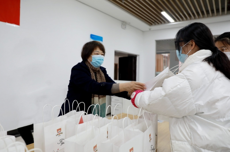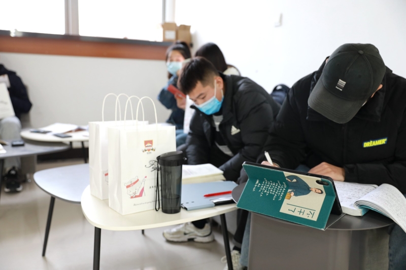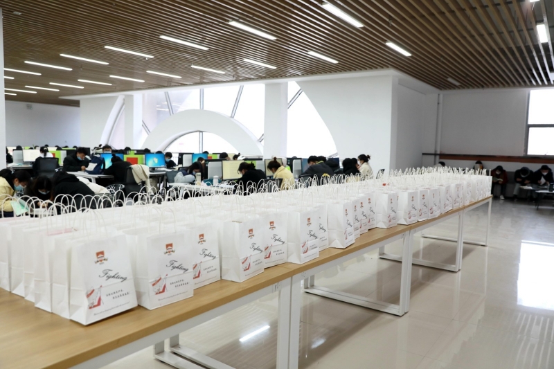 程印學(xué)一行為同學(xué)們發(fā)放禮包,并傳達(dá)校領(lǐng)導(dǎo)的關(guān)懷與祝福,為他們加油打氣,祝愿他們成功上岸、一戰(zhàn)成碩。