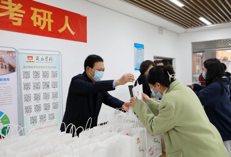 在2023年全國(guó)碩士研究生招生考試即將來(lái)臨之際,為鼓勵(lì)考研學(xué)子積極備考、沉著應(yīng)考,12月8日,商丘學(xué)院黨委副書記、校長(zhǎng)程印學(xué)、黨委副書記副校長(zhǎng)張?jiān)偻恍校诮虅?wù)處、圖書館、校團(tuán)委等負(fù)責(zé)人的陪同下前往圖書館考研自習(xí)室看望慰問(wèn)考研學(xué)子,表達(dá)學(xué)校的祝福和關(guān)心。