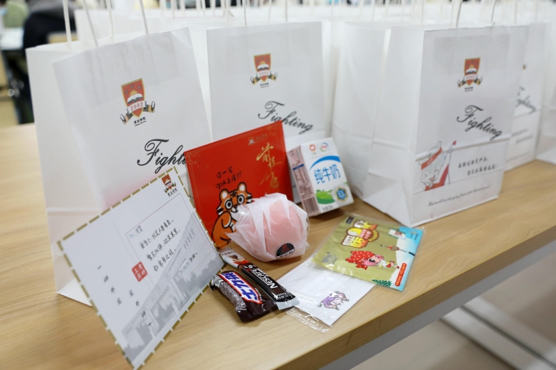 漫漫考研路,殷殷師生情。商丘學(xué)院心系關(guān)懷考研學(xué)生,高度重視考研工作。一年來(lái),校領(lǐng)導(dǎo)和老師們通過(guò)走訪寢室、談心談話、開展講座、線上答疑等多種方式動(dòng)員、幫助學(xué)生樹立考研目標(biāo)、堅(jiān)定考研信心、解答考研疑惑、舒緩心理壓力。當(dāng)下,考試在即,校領(lǐng)導(dǎo)積極籌備購(gòu)買物資,為考研學(xué)子精心準(zhǔn)備“加油包”,暖心“加油包”包括賀卡、橙子、士力架、咖啡、暖貼、口罩、牛奶等物資。