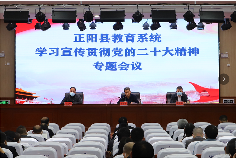 正陽縣教育局召開傳達(dá)學(xué)習(xí)黨的二十大精神專題會(huì)議,通過領(lǐng)學(xué)《黨的二十大報(bào)告全文》和《習(xí)近平在黨的二十大閉幕式上的重要講話》,深入領(lǐng)會(huì)黨的二十大精神,安排部署教育系統(tǒng)學(xué)習(xí)宣傳貫徹工作。