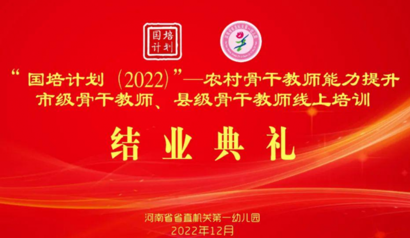 12月27日,由河南省省直機關第一幼兒園的“國培計劃(2022)——農(nóng)村骨干教師能力提升市級骨干教師、縣級骨干教師培訓”結業(yè)典禮在線上舉行。省直一幼黨委書記、園長韓虹及班子成員出席結業(yè)典禮。伴隨著省直一幼園歌《愛的搖籃》,來自省內(nèi)各地市的400名學員和國培培訓團隊共同完成了為期13天的集中線上培訓,順利結業(yè)。