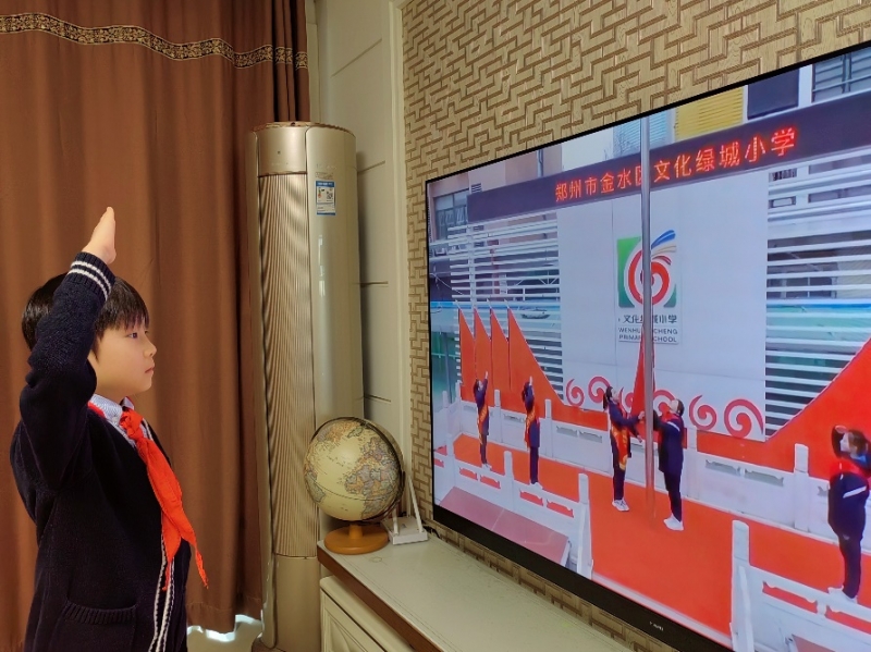 虎躍雄關(guān)蹤影去,兔臨春境曉光新。又是一個(gè)收獲喜悅、憧憬新春的年末,回顧走過的2022,孩子們?cè)诔鋵?shí)豐富的多彩活動(dòng)中不斷收獲成長(zhǎng)。2022年12月31日上午9:00,鄭州市金水區(qū)文化綠城小學(xué)全體師生相聚云端,舉行2022-2023學(xué)年第一學(xué)期散學(xué)典禮。充滿儀式感的散學(xué)典禮為這一學(xué)期畫上圓滿的句號(hào),一同開啟新年的展望。散學(xué)典禮在莊嚴(yán)的國歌聲中緩緩拉開序幕,五星紅旗冉冉升起,全體少先隊(duì)員穿著整潔的校服,佩戴好紅領(lǐng)巾,面對(duì)國旗唱國歌、敬隊(duì)禮。莊嚴(yán)的云端升旗儀式,飽含著師生心中的一份深深敬意。