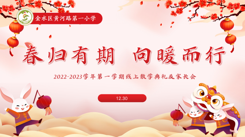 寒冬料峭期末至,碩果滿懷假期來。2022年即將過去,充滿希望的2023年就要到來。為了給這個特殊而又充實的學(xué)期畫上圓滿的句號,更好地引導(dǎo)學(xué)生安全、充實、有意義地度過寒假生活,鄭州市金水區(qū)黃河路第一小學(xué)開展了“喜迎瑞兔年,暖暖散學(xué)禮”系列主題活動。