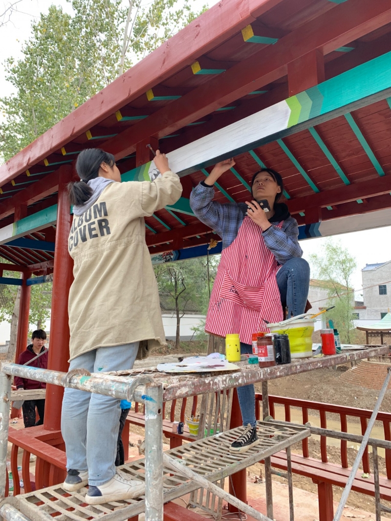 針對(duì)本次的項(xiàng)目實(shí)踐活動(dòng),小組負(fù)責(zé)人魏曉高同學(xué)表示,有責(zé)任有擔(dān)當(dāng),青春才會(huì)閃光。同學(xué)們?cè)趯?shí)踐過(guò)程中珍惜機(jī)會(huì)、珍惜平臺(tái)、注重學(xué)習(xí)、注重歷練,在社會(huì)實(shí)踐活動(dòng)中得到了真正的成長(zhǎng)和進(jìn)步。也正是得益于廣闊的實(shí)踐平臺(tái),同學(xué)們深入街頭巷陌和田間地頭,多角度感知鄉(xiāng)村社會(huì),多維度了解村民訴求,在關(guān)注民情、體察民意的同時(shí),更深切感受到了青春建功的社會(huì)責(zé)任感,為營(yíng)造干凈、整潔、健康、文明、優(yōu)雅的美麗肖莊貢獻(xiàn)了自己的力量。美術(shù)學(xué)院團(tuán)總支學(xué)生副書記曾路表示,在本次社會(huì)實(shí)踐活動(dòng)中,學(xué)院團(tuán)總支在校黨委、行政和上級(jí)團(tuán)組織的大力支持下,充分發(fā)揮了團(tuán)組織的凝聚作用和組織優(yōu)勢(shì),吸引了學(xué)校志同道合的廣大青年,不僅為肖莊村的發(fā)展建言獻(xiàn)策,同時(shí)也通過(guò)自己的專業(yè)所長(zhǎng),為肖莊村繪制了3000余平方米的大型壁畫,規(guī)劃設(shè)計(jì)了數(shù)十處古建門樓、民居院落、湖塘景觀和公共場(chǎng)館,全方位提升了肖莊村的內(nèi)涵建設(shè)、文化氛圍和人居環(huán)境。