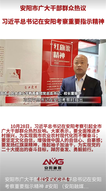 盛會(huì)召開擘畫藍(lán)圖,精神薪火傳承不息。黨的二十大召開以來,安陽市教育系統(tǒng)以多種形式扎實(shí)開展學(xué)習(xí)宣傳黨的二十大精神活動(dòng)。在黨的二十大勝利閉幕后不久,習(xí)近平總書記就來到紅旗渠和殷墟進(jìn)行考察,安陽市師生更是倍感振奮,深受鼓舞。