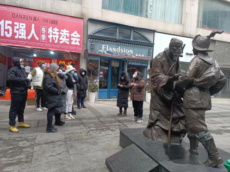 活動(dòng)伊始,在一尊尊歷史名人雕塑前,文化街區(qū)講解員娓娓道來,一則則中華民族傳承的故事徐徐展開,歷史人物接續(xù)的民族精神讓國際學(xué)生頻頻點(diǎn)頭和贊嘆。