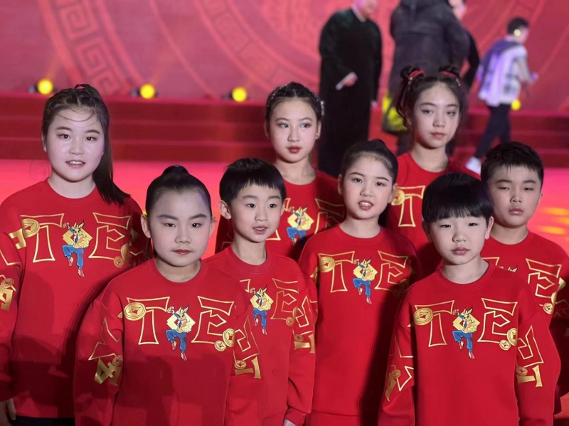 據(jù)鄭州市鄭東新區(qū)龍騰小學(xué)藝術(shù)團(tuán)的負(fù)責(zé)人婁文聰老師介紹:“團(tuán)拜會(huì)總計(jì)6個(gè)節(jié)目,今年開場(chǎng)節(jié)目的演員數(shù)量,創(chuàng)下了歷屆團(tuán)拜會(huì)開場(chǎng)節(jié)目的新紀(jì)錄,龍騰小學(xué)學(xué)生也是這次新記錄的參與者,他們特別興奮。”
