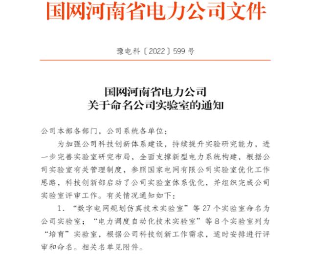 近日,國網(wǎng)河南省電力公司發(fā)布了《國網(wǎng)河南省電力公司關(guān)于命名公司實驗室的通知》(豫電科2022-599號),由鄭州電力高等專科學(xué)校能源與動力工程學(xué)院牽頭申報的“分布式電源與儲能技術(shù)實驗室”獲批河南省電力公司培育實驗室。此次申報工作從2022年9月份啟動至今,先后經(jīng)過初評篩選、集中答辯、考察等環(huán)節(jié),層層遴選最終確定。