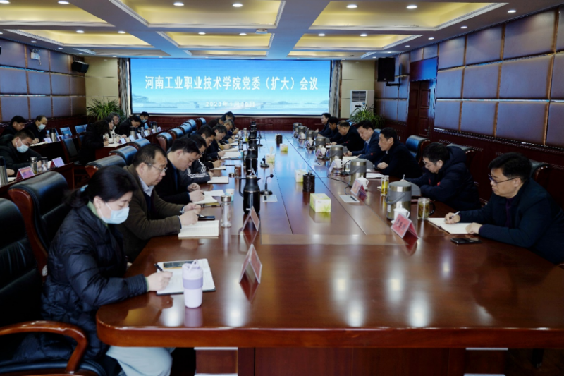 1月30日,河南工業(yè)職業(yè)技術學院召開黨委(擴大)會議,傳達學習省教育廳2023年工作務虛會暨2022年述職評議會議精神。河南工業(yè)職業(yè)技術學院全體校領導、各職能處室負責同志參加會議,學校黨委書記溫道軍主持會議。