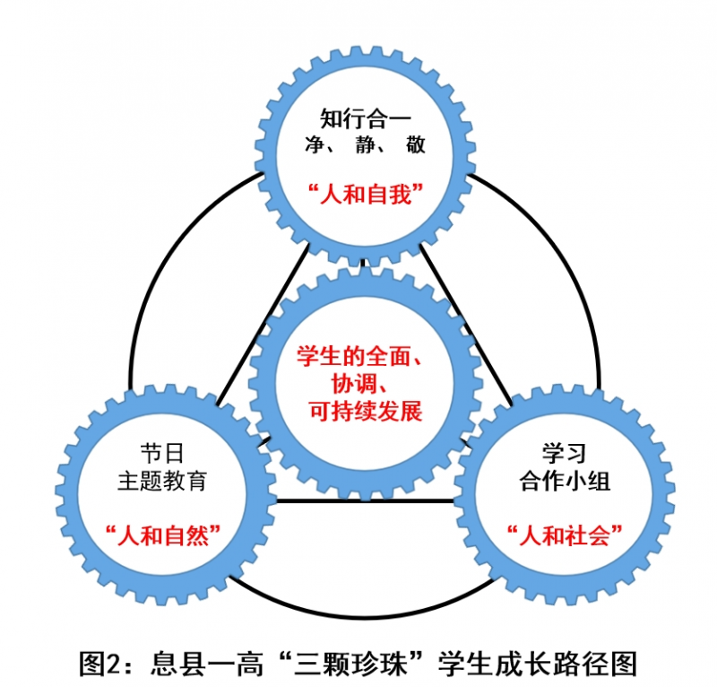 學(xué)生成長(zhǎng)“三顆珍珠”指的是知行合一、凈靜敬,學(xué)習(xí)合作小組,節(jié)日文化。學(xué)生的全面、協(xié)調(diào)、可持續(xù)發(fā)展離不開學(xué)生“三顆珍珠”的有機(jī)結(jié)合。