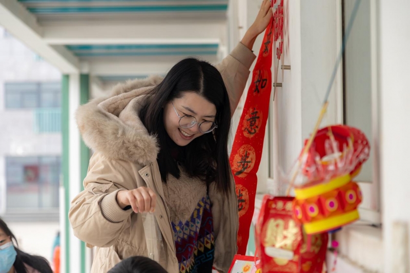 儀式結(jié)束后,在正副班主任老師的帶領(lǐng)下,同學(xué)們紛紛拿出自己制作的花燈來裝點(diǎn)教室,荷花燈、兔子燈……一盞盞惟妙惟肖的花燈,一張張開心興奮的笑臉,教室里到處洋溢著辭舊迎新的喜悅氣息,裝點(diǎn)完畢,老師帶領(lǐng)學(xué)生一起賞花燈、猜燈謎。