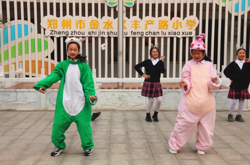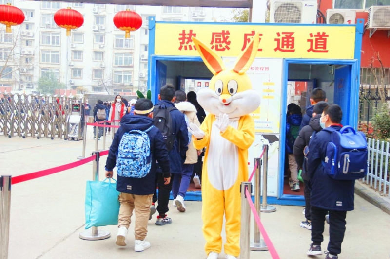早上八點(diǎn),迎著新學(xué)期的朝霞,伴著一聲聲親切的問候,滿懷喜悅的心情,豐產(chǎn)學(xué)子們身穿整潔的校服,頭戴各具特色的兔子頭飾,邁著輕快的步伐有序排隊(duì)測(cè)溫進(jìn)入校園,一張張臉上都洋溢著幸福的微笑。