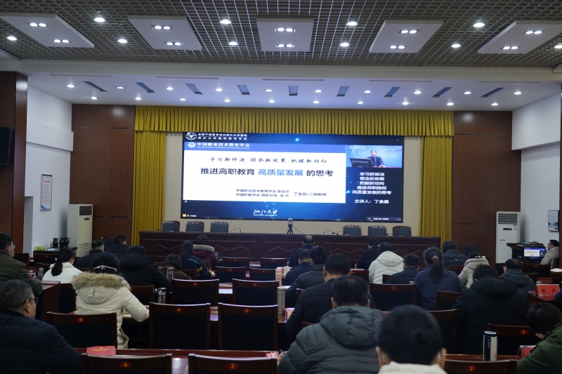 浙江大學(xué)繼續(xù)教育學(xué)院特約教師、中國(guó)職業(yè)技術(shù)教育學(xué)會(huì)副會(huì)長(zhǎng)丁金昌以《學(xué)習(xí)新修法、領(lǐng)會(huì)新政策、把握新動(dòng)向,推動(dòng)高職院校高質(zhì)量發(fā)展》為題,結(jié)合多年職業(yè)教育工作經(jīng)驗(yàn),系統(tǒng)全面解讀了職業(yè)教育面臨的新形勢(shì)、新動(dòng)態(tài),并就如何加快推動(dòng)現(xiàn)代職業(yè)教育高質(zhì)量發(fā)展提出了有益指導(dǎo)。浙江大學(xué)教育學(xué)院教授祝懷新以《高職院校領(lǐng)導(dǎo)者的創(chuàng)新思維與管理智慧》為題,就領(lǐng)導(dǎo)干部如何突破思維定式,抓住機(jī)遇積極應(yīng)變,開(kāi)創(chuàng)工作新局面等提出了有益指導(dǎo)。