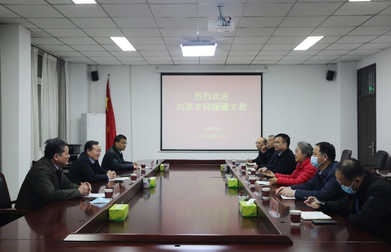 2月12日下午,許昌學(xué)院在辦公樓第一會(huì)議室舉行劉彥老師赴新疆開(kāi)展支教工作歡送會(huì)。校黨委書記郭濤,院長(zhǎng)鄭直,副院長(zhǎng)高金星出席歡送會(huì)。