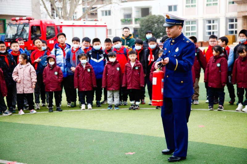 在學(xué)校操場,一年級和四年級學(xué)生在消防紅和綠草地之間認(rèn)真聆聽消防員對如何預(yù)防及在火災(zāi)初期如何正確使用滅火器、選擇滅火器及居家消防安全注意事項(xiàng)的講解,孩子們與消防員積極互動、有趣充實(shí)。消防知識的普及讓孩子們懂得在遇到危險時該如何保護(hù)自己,增強(qiáng)了自我防范意識和自護(hù)自救的能力。